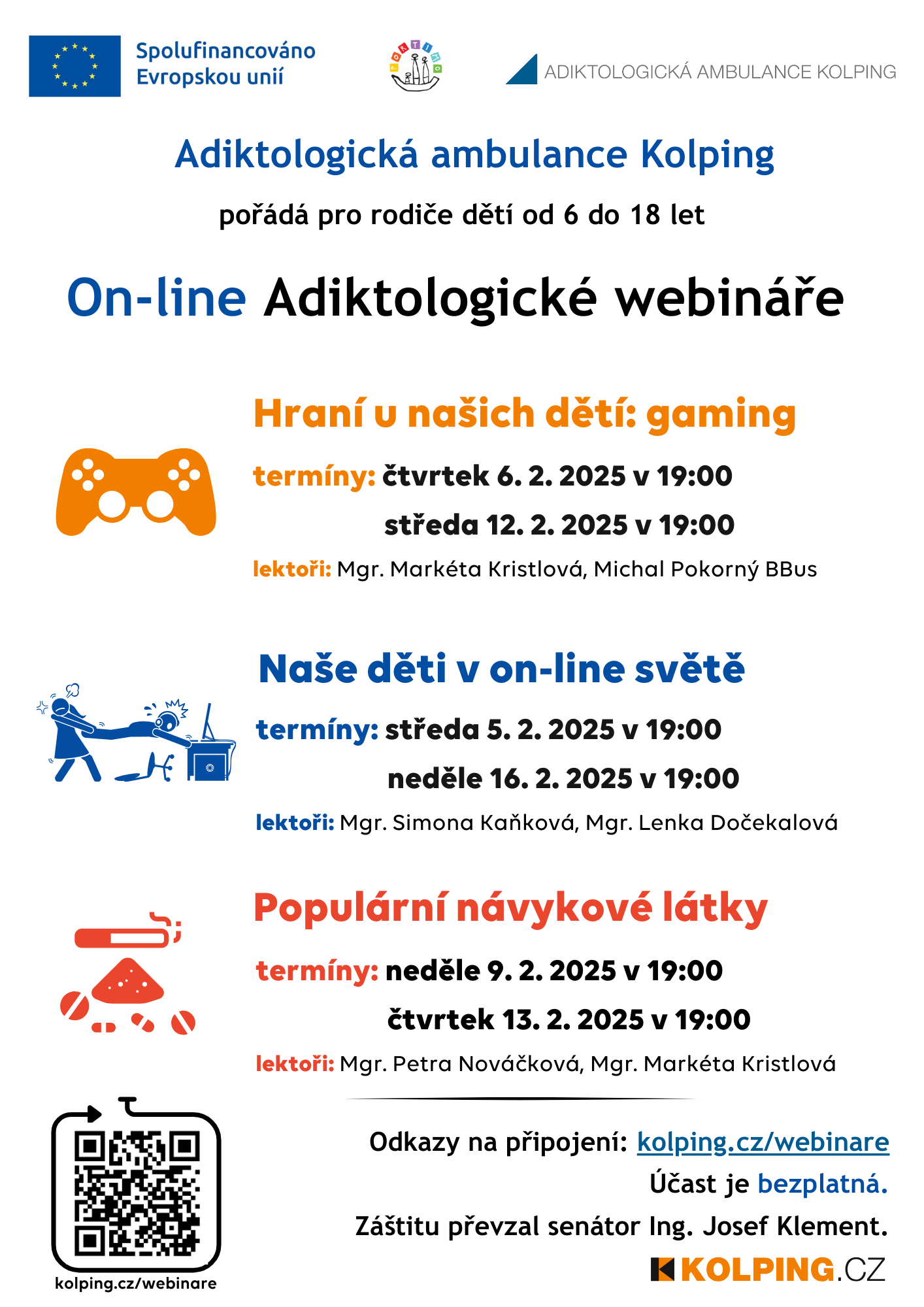 Odkazy na připojení na jednotlivé webináře, anotace k webinářům a další bližší informace naleznete zde: https://www.kolping.cz/webinare/